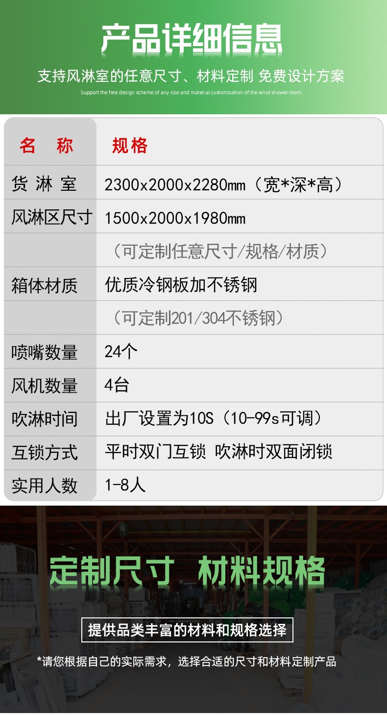 風淋區尺寸:1500*2000*1980